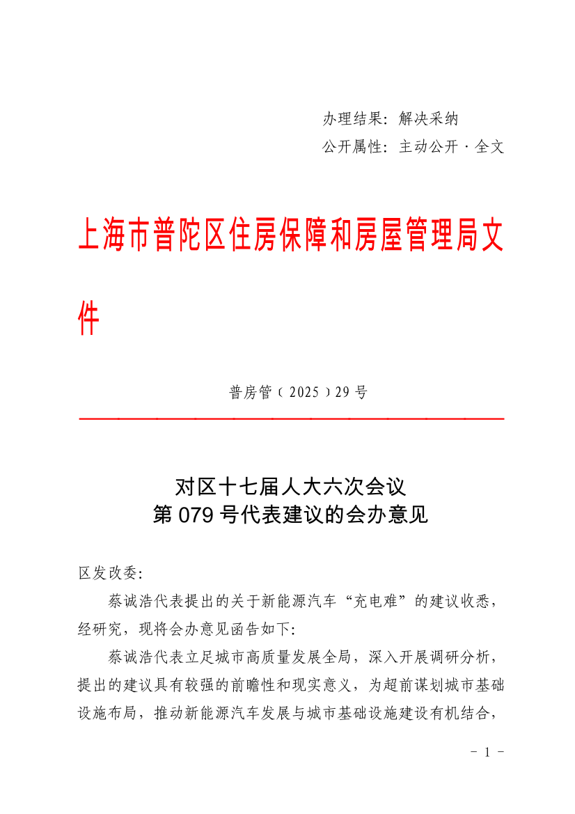 蔡诚浩代表提出的关于新能源汽车“充电难”的建议收悉,经研究,现将会办意见函告如下: