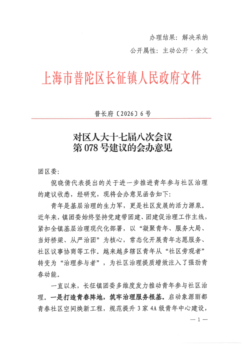 倪晓倩代表提出的关于进一步推进青年参与社区治理的建议收悉,经研究,现将会办意见函告如下: