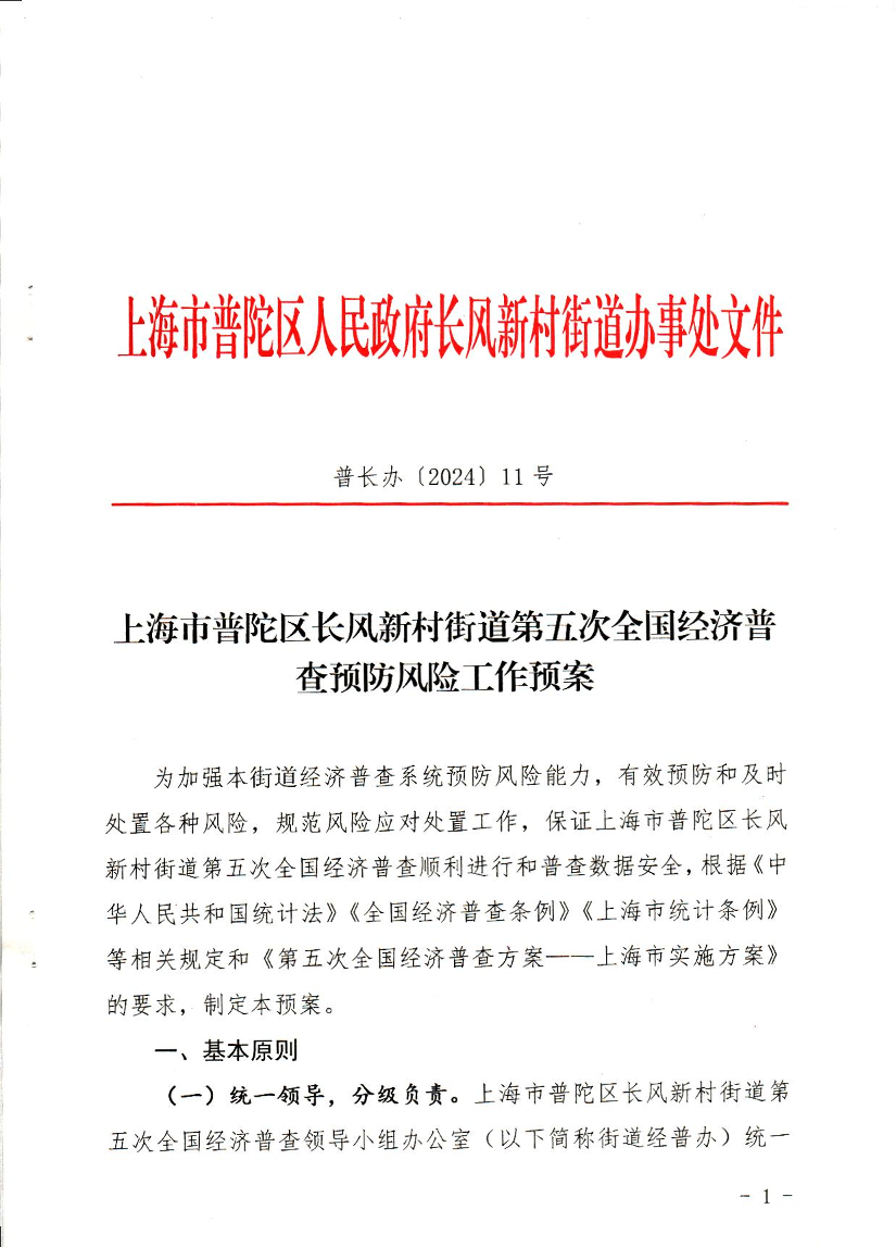 上海市普陀区长风新村街道第五次全国经济普查预防风险工作预案