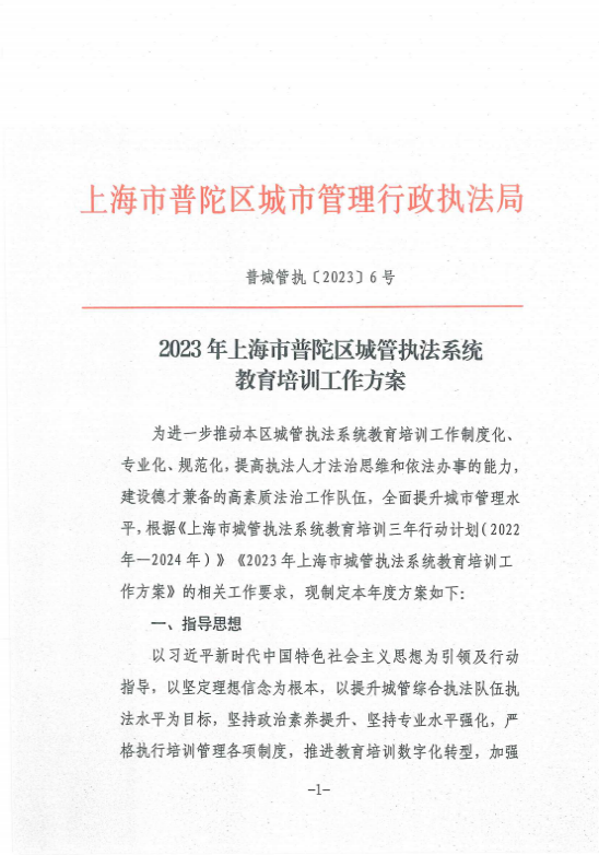 2023年上海市普陀区城管执法系统教育培训工作方案