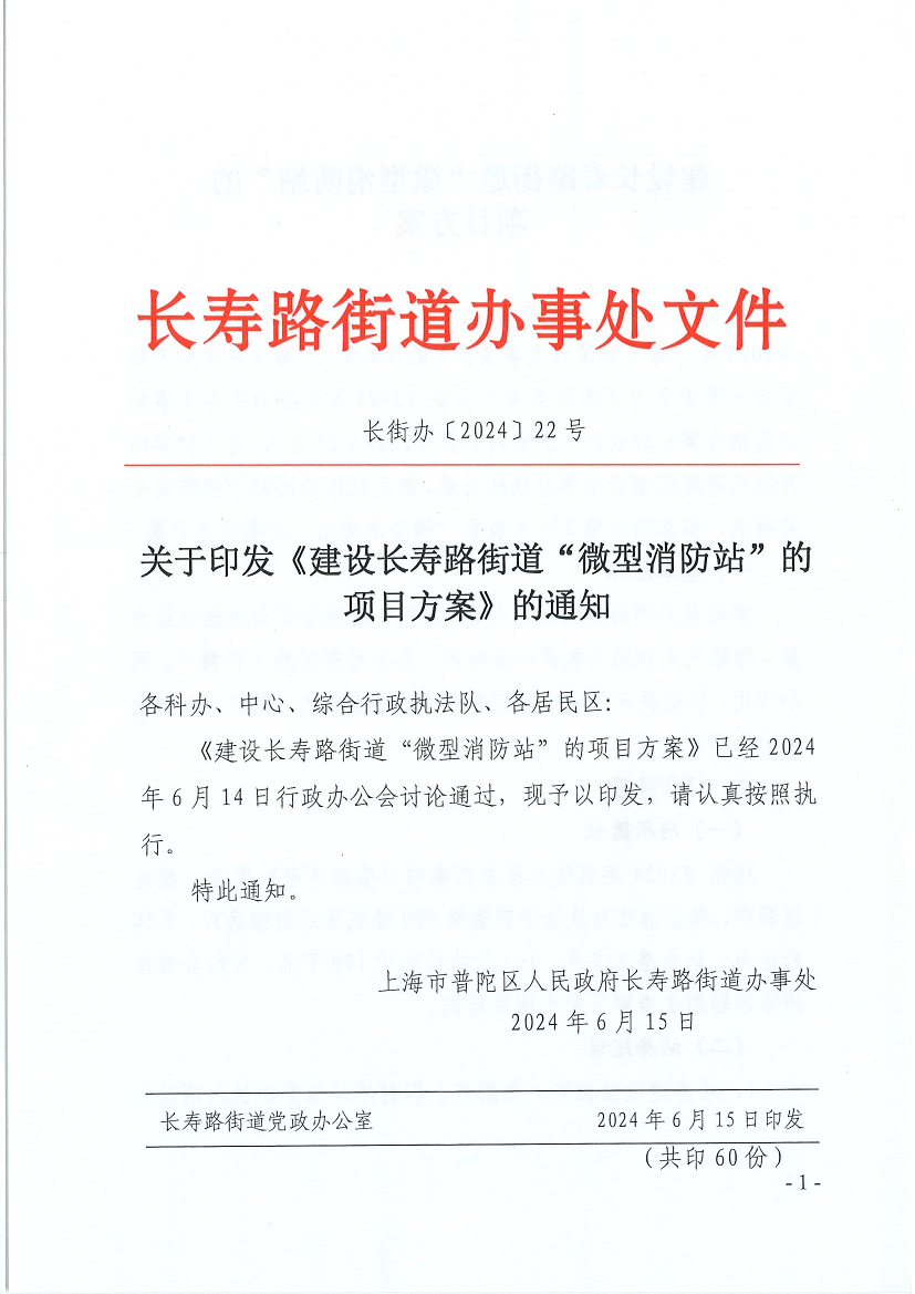 关于印发《建设长寿路街道“微型消防站”的 项目方案》的通知