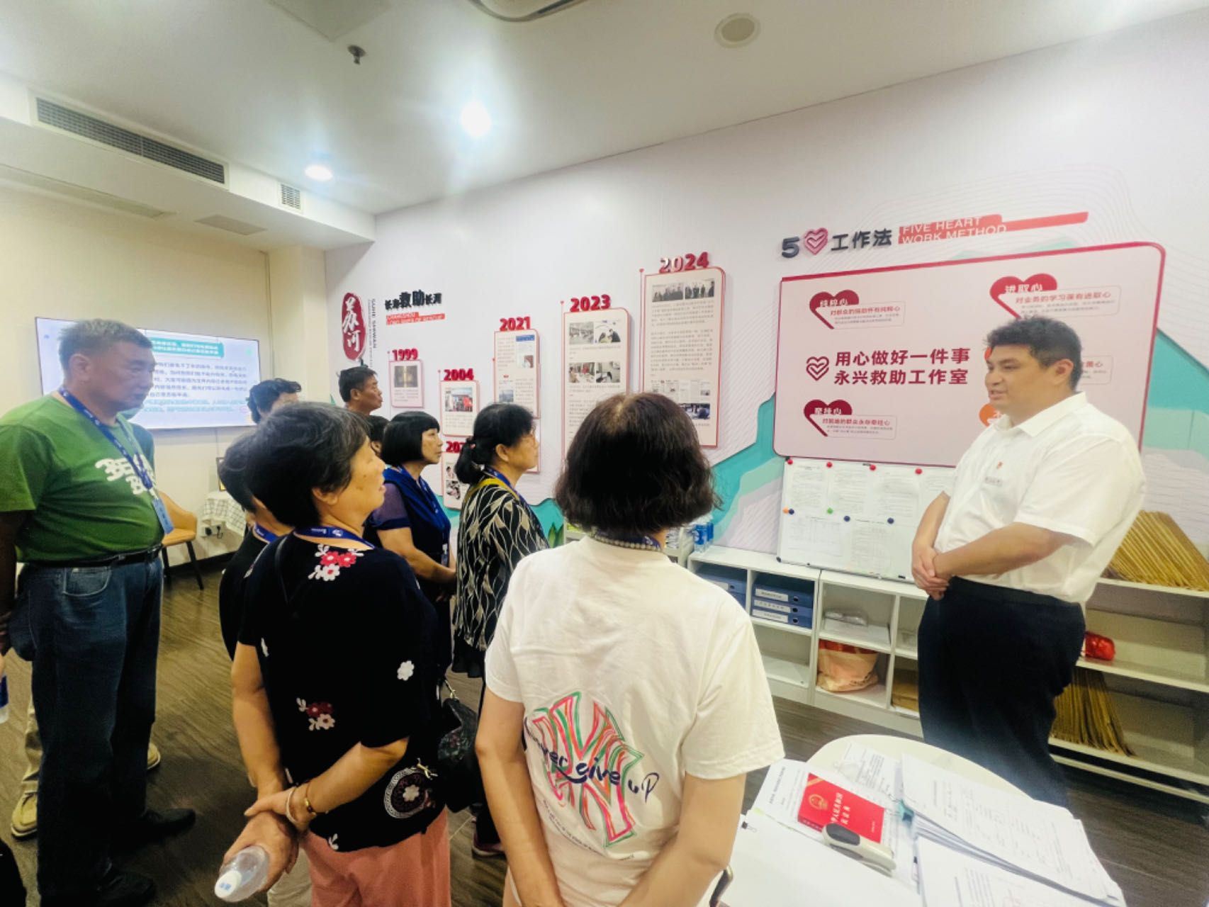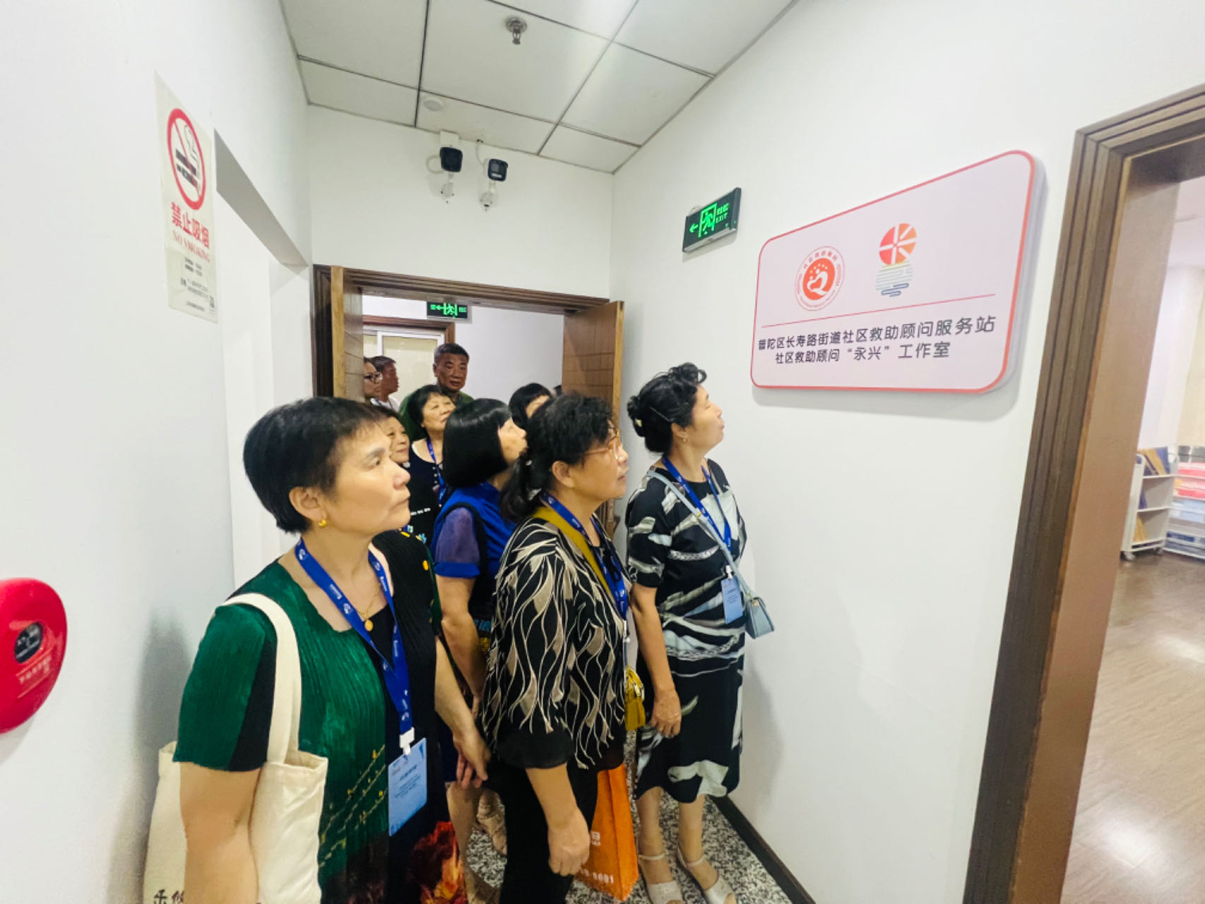 公众代表们参观了“普陀区长寿路街道社区救助顾问汪永兴工作室”。工作室是在区民政局指导下,长寿社区事务受理服务中心进一步探索和推进的社区救助顾问工作室空间的实体化建设成果。工作室通过充分整合社会救助服务资源,发挥实物救助和精神救助的枢纽作用,积极实践社会救助新路径,把社会救助服务变成困难群众“找得到、看得着、帮得上、靠得住”的靠谱服务。