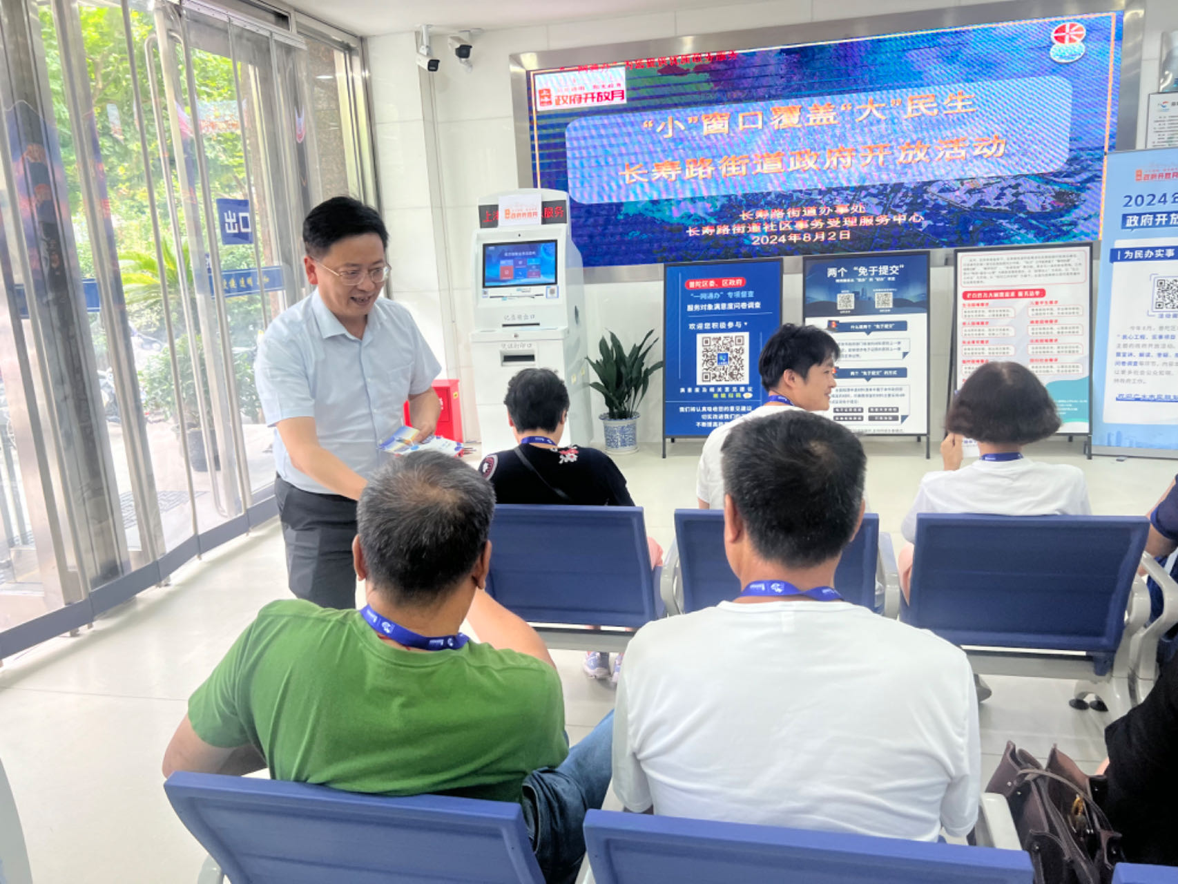 2024年08月02日 来源: 上海普陀为拓宽政府开放渠道、扩大活动展示面,让更多社会公众知晓、了解、认同、支持政府工作,长寿路街道办事处配合区政府“政府开放月”,于8月2日在长寿路街道社区事务受理服务中心开展政府开放活动。借此契机,聚焦群众关注的民生内容,通过政民互动、政策讲解,让民众体验感受街道是如何致力于提高政务服务的标准化、规范化、便利化水平。