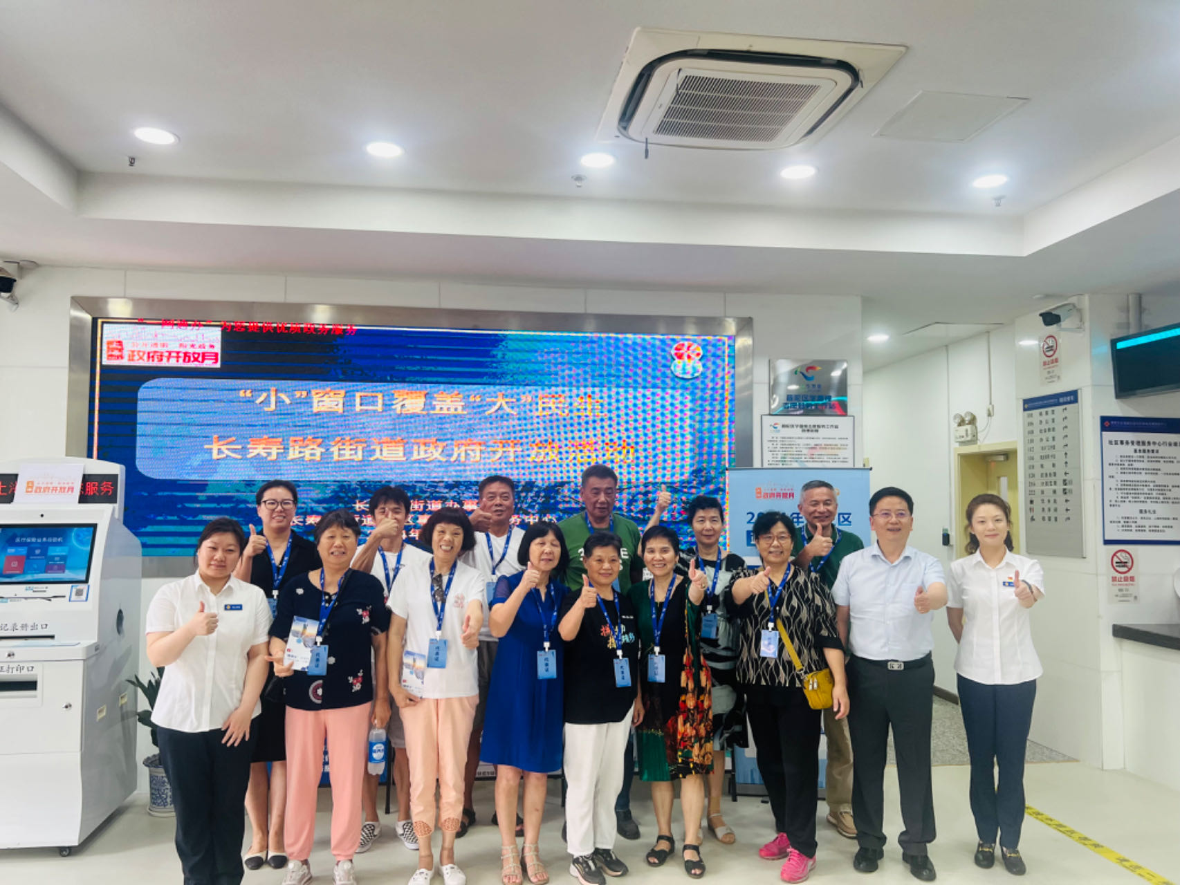 在工作人员的带领下,公众代表们实地参观了长寿社区事务受理服务中心,进一步了解了街道受理服务的工作流程、“一网通办”政务服务自助机热门办理项目等,并通过观看受理服务中心大屏滚动播放的内容,对“一网通办”“高效办成一件事”等群众关心的办事项目和政策有了更深刻的认识。