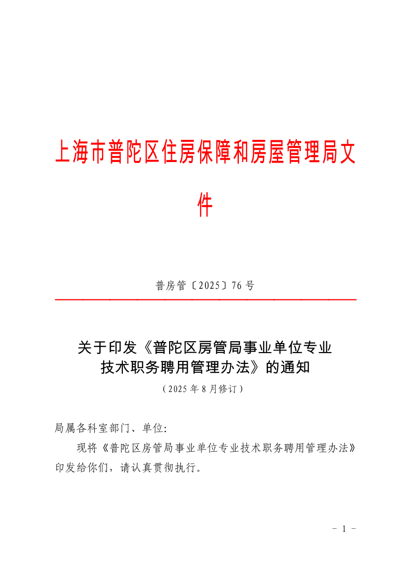关于印发《普陀区房管局事业单位专业技术职务聘用管理办法》的通知