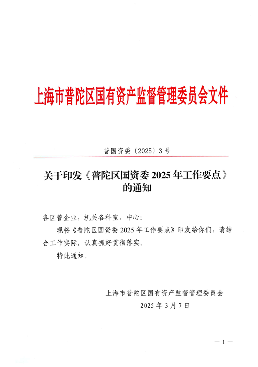 关于印发《普陀区国资委2025年工作要点》 的通知