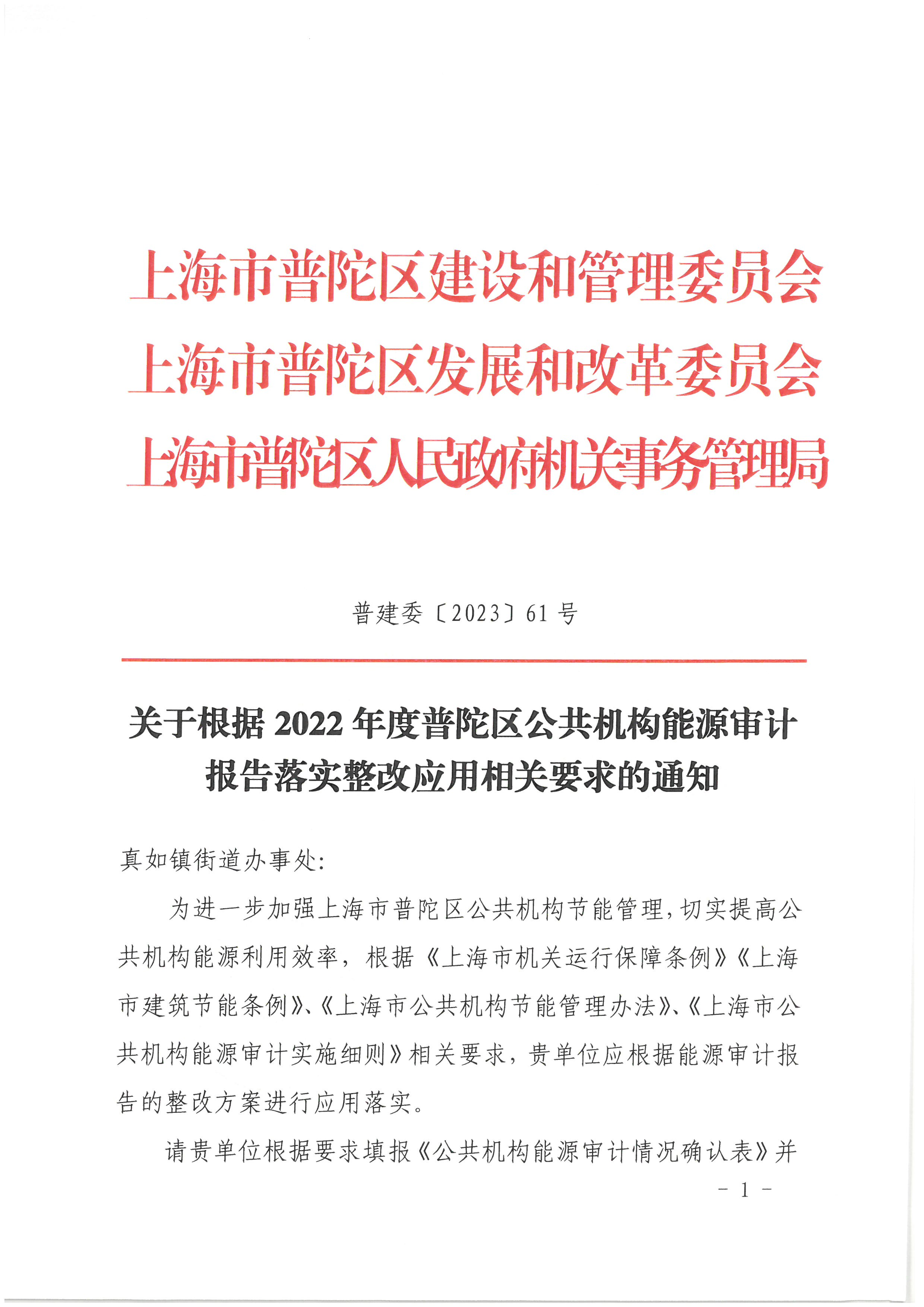 关于根据2022年度普陀区公共机构能源审计报告落实整改应用相关要求的通知