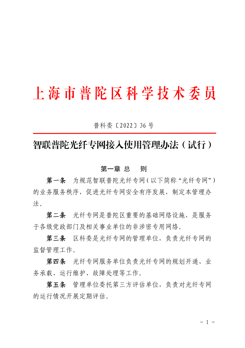 第一条 为规范智联普陀光纤专网(以下简称“光纤专网”)的业务服务秩序,促进光纤专网安全有序发展,制定本管理办法。