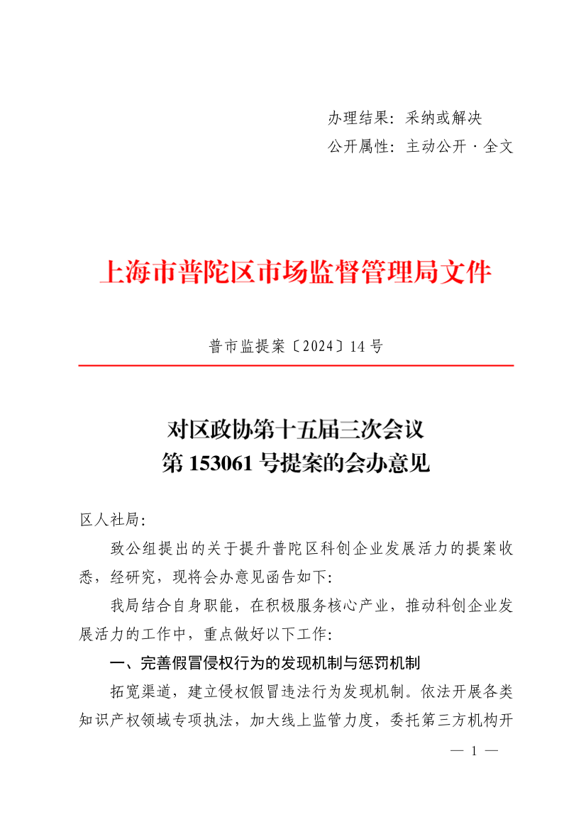 致公组提出的关于提升普陀区科创企业发展活力的提案收悉,经研究,现将会办意见函告如下: