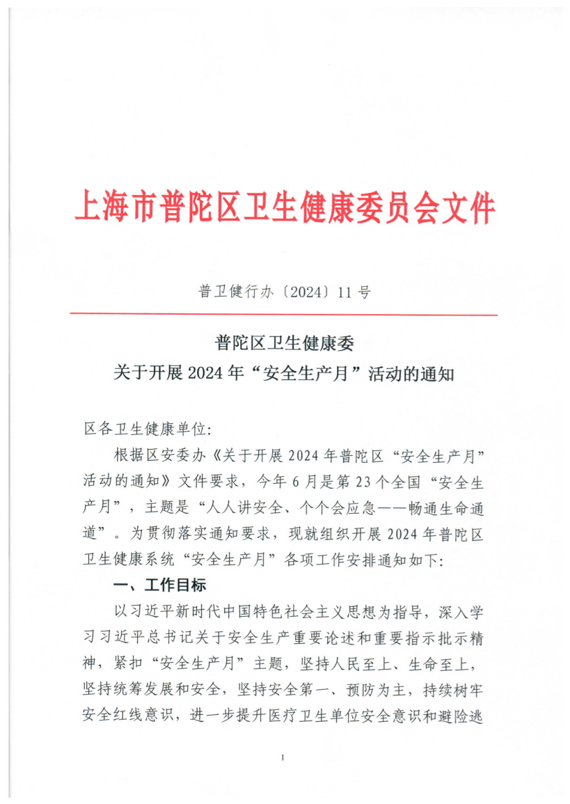 普陀区卫生健康委关于开展2024年“安全生产月”活动的通知