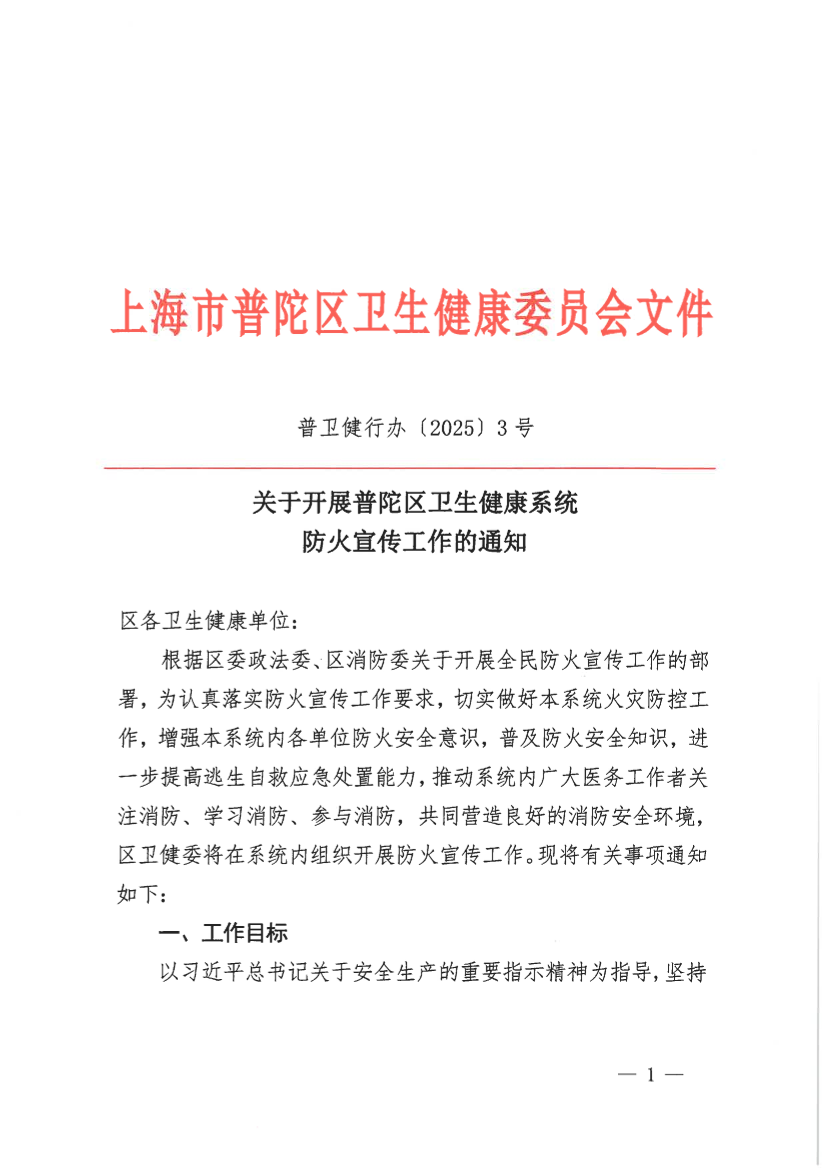 关于开展普陀区卫生健康系统防火宣传工作的通知