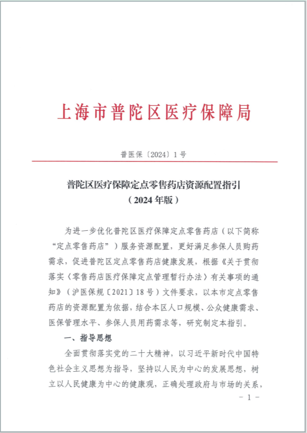 普陀区医疗保障定点零售药店资源配置指引(2024年版)
