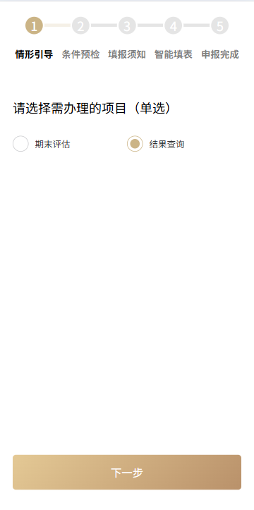 1、选择“期末评估”,选择是否授权办理,意向登记街道