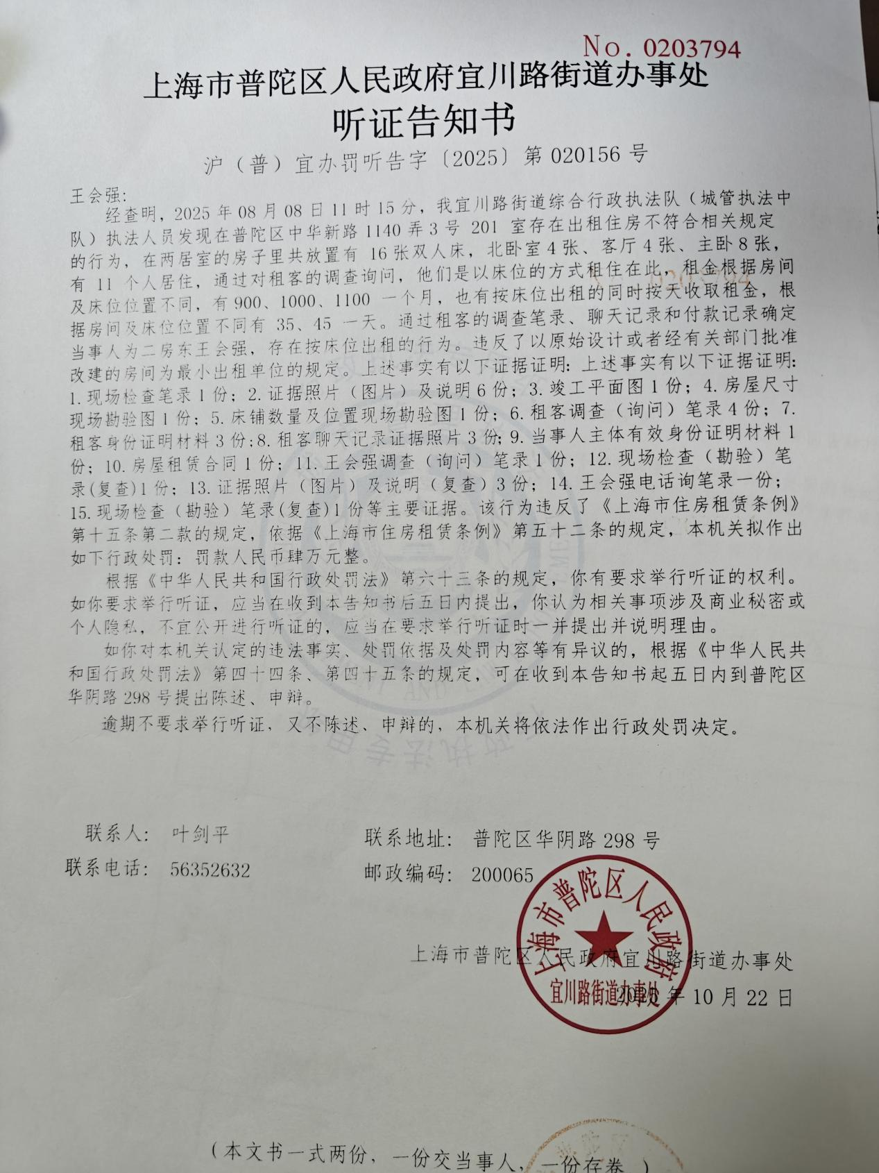 附件:《上海市普陀区人民政府宜川路街道办事处听证告知书》(沪(普)宜办罚听告字〔2025〕第020156号)