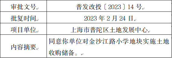 同意你单位对金沙江路小学地块实施土地收购储备。 |