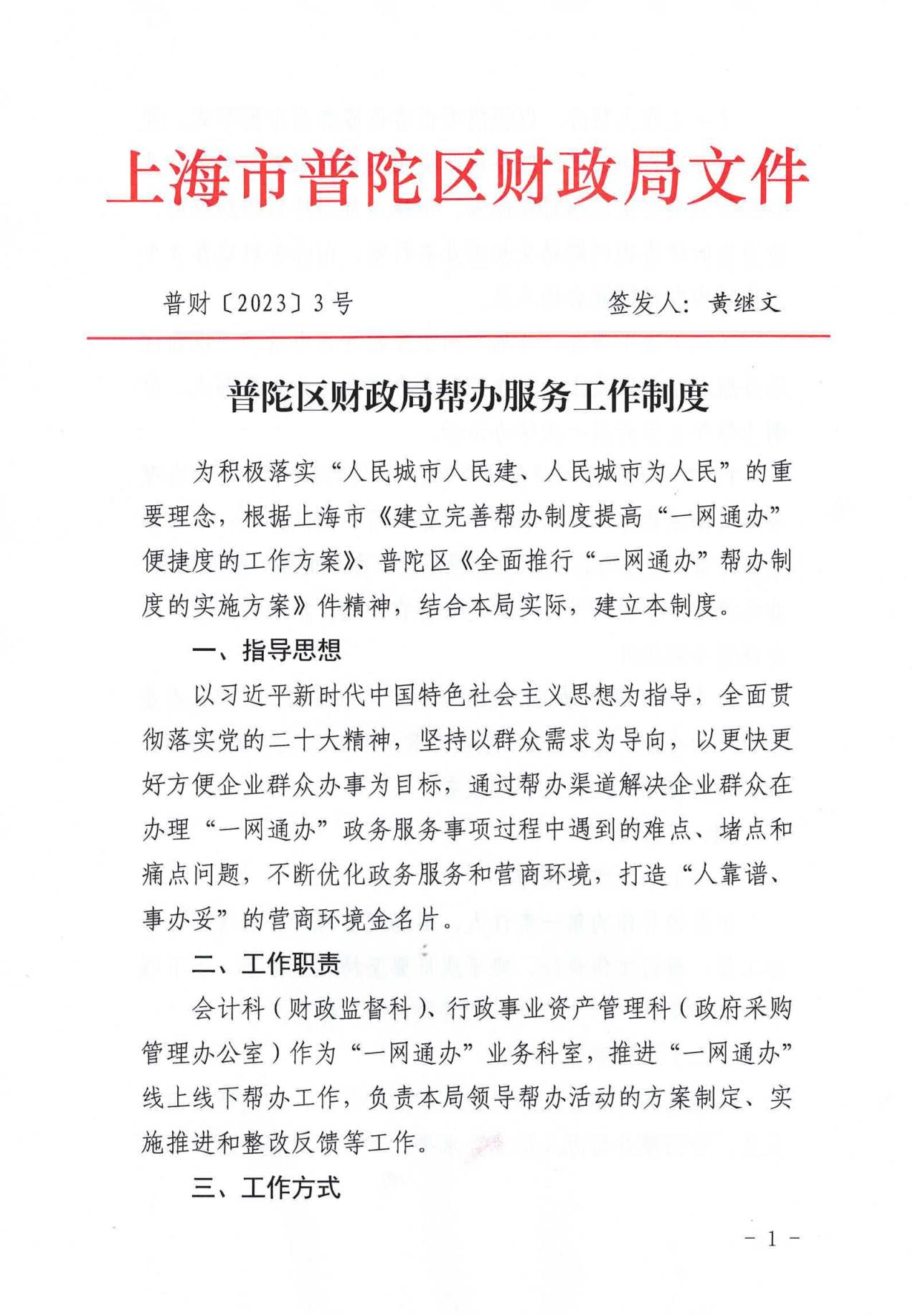 为积极落实“人民城市人民建、人民城市为人民”的重要理念,根据上海市《建立完善帮办制度提高“一网通办”便捷度的工作方案》、普陀区《全面推行“一网通办”帮办制度的实施方案》件精神,结合本局实际,建立本制度。