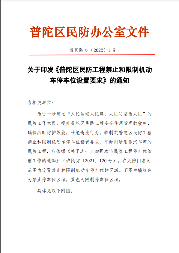 关于印发《普陀区民防工程禁止和限制机动车停车位设置要求》的通知