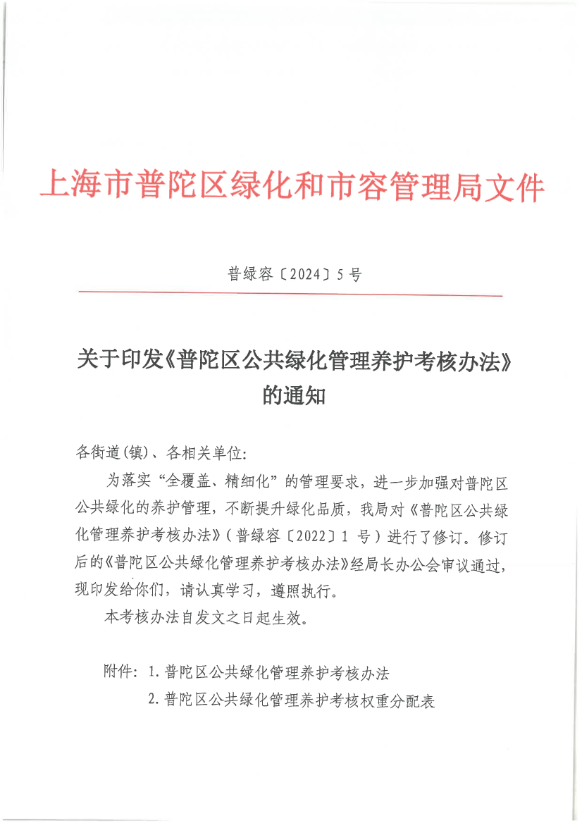 关于印发《普陀区公共绿化管理养护考核办法》的通知