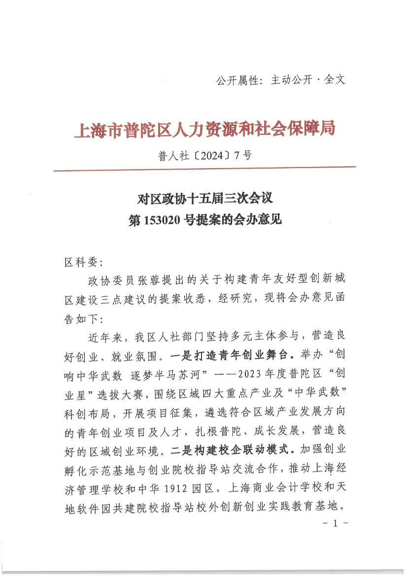 政协委员张蓉提出的关于构建青年友好型创新城区建设三点建议的提案收悉,经研究,现将会办意见函告如下: