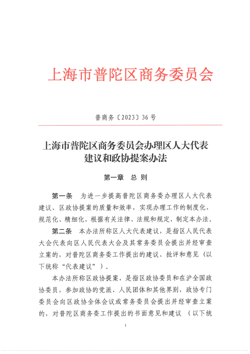 上海市普陀区商务委员会办理区人大代表建议和政协提案办法