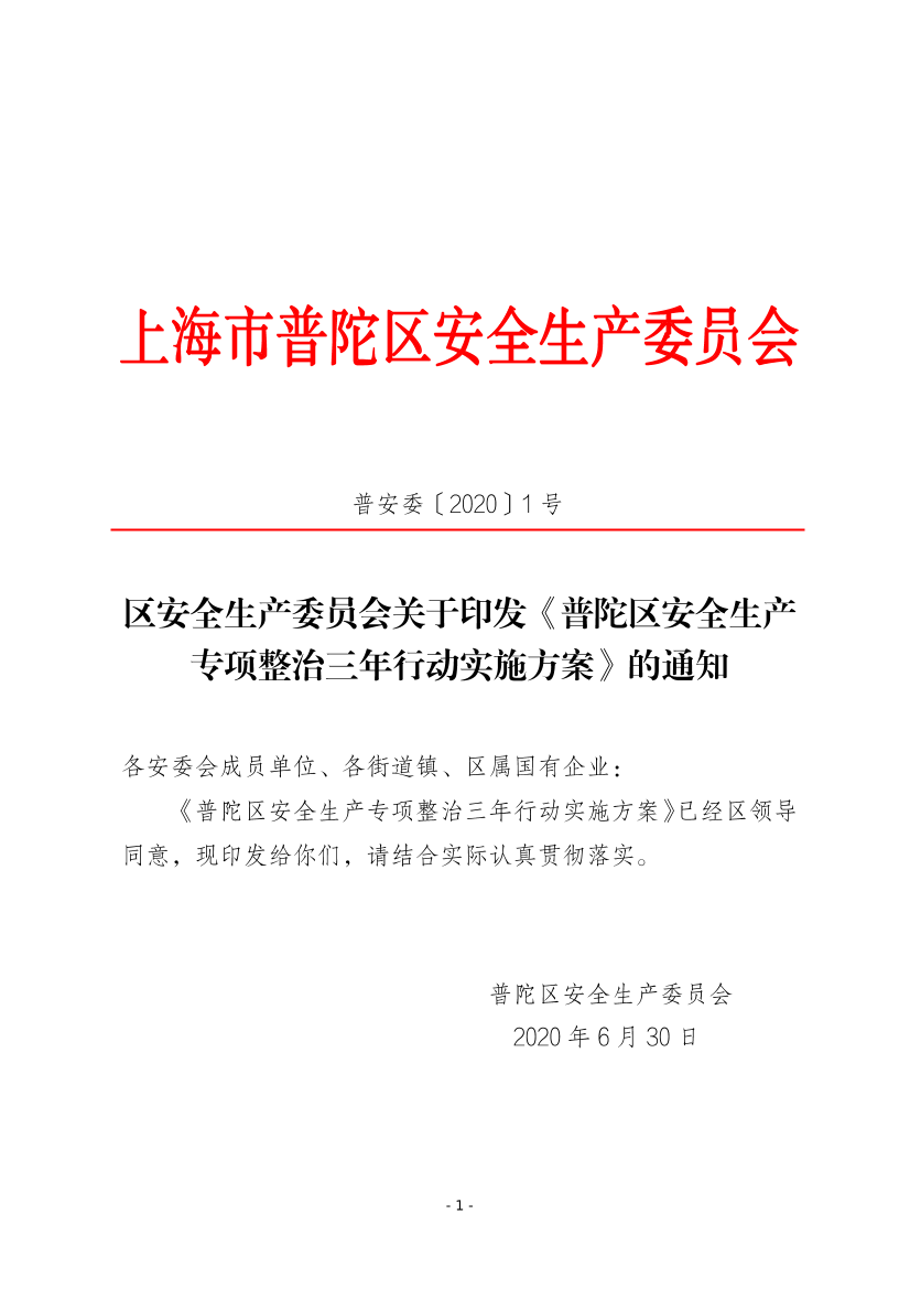 区安全生产委员会关于印发《普陀区安全生产专项整治三年行动实施方案》的通知
