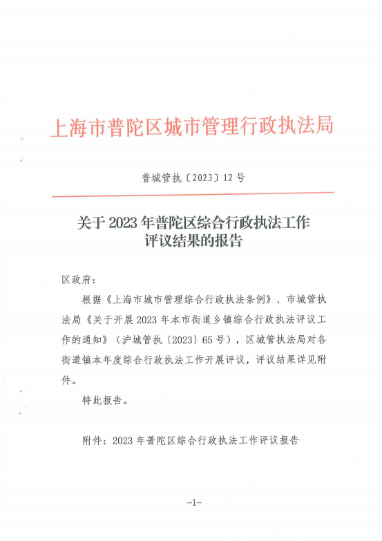 关于2023年普陀区综合行政执法工作评议结果的报告