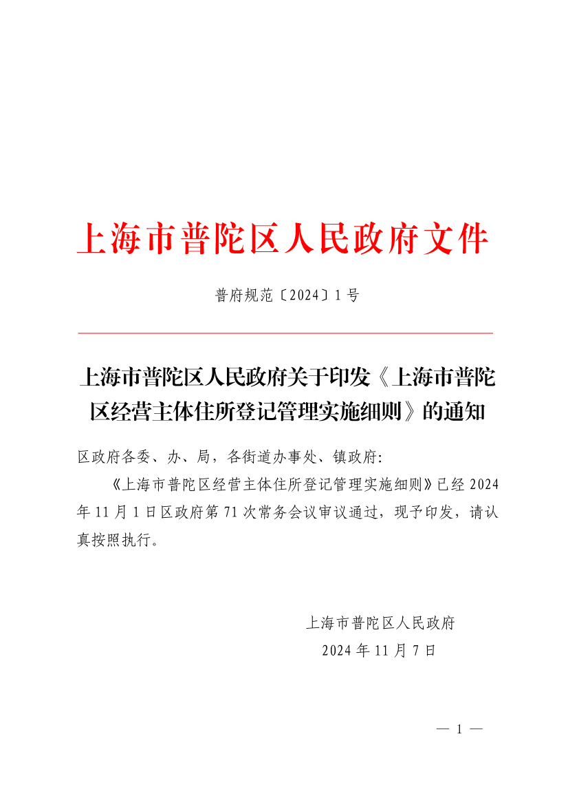 上海市普陀区人民政府关于印发《上海市普陀区经营主体住所登记管理实施细则》的通知