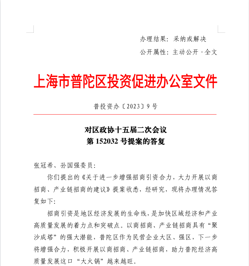 你们提出的《关于进一步增强招商引资合力,大力开展以商招商、产业链招商的建议》提案收悉,经研究,现将办理情况答复如下: