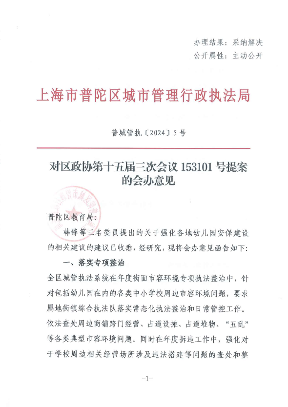 韩锋等三名委员提出的关于强化各地幼儿园安保建设的相关建议的建议已收悉,经研究,现将会办意见函告如下: