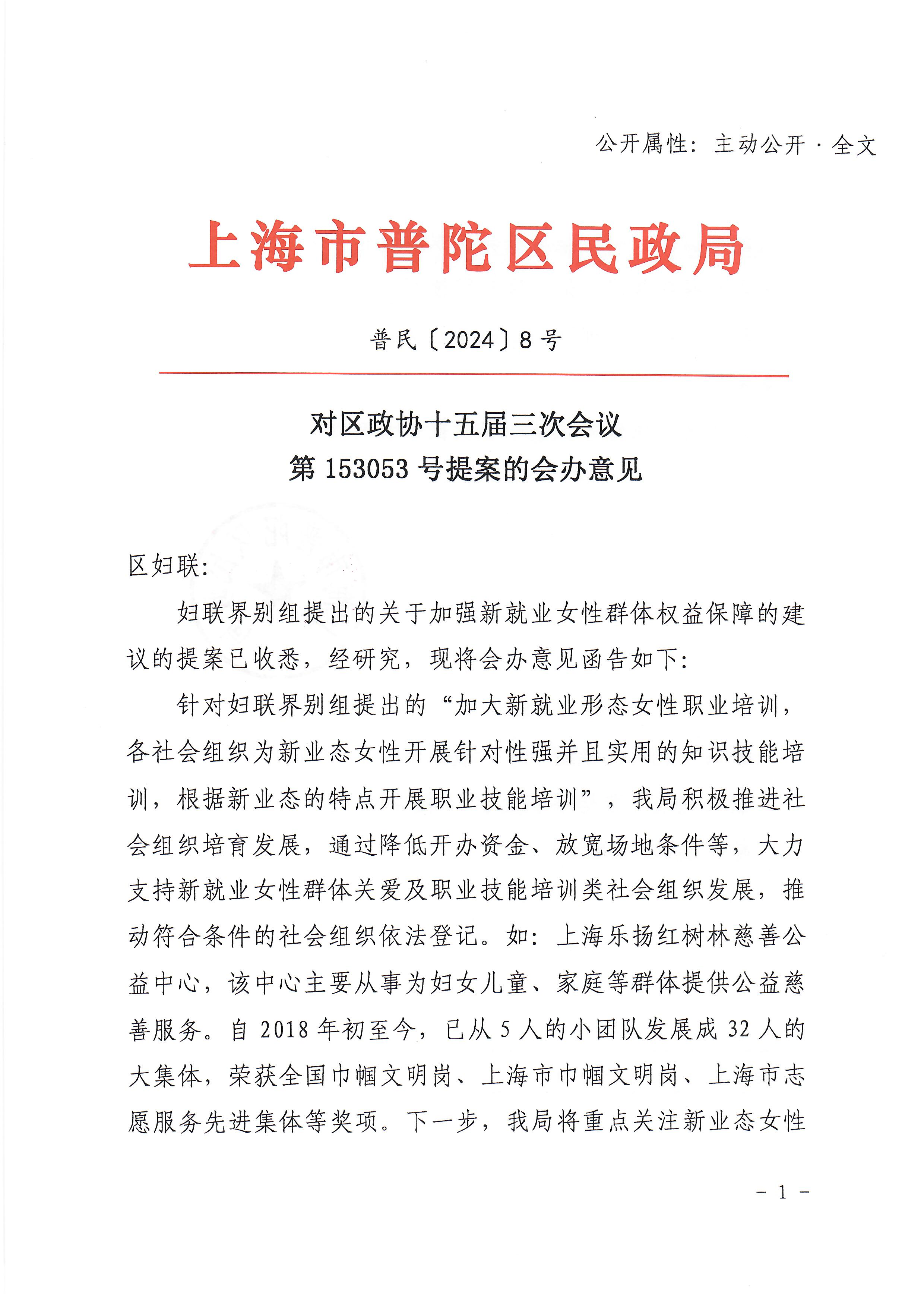 针对妇联界别组提出的“加大新就业形态女性职业培训,各社会组织为新业态女性开展针对性强并且实用的知识技能培训,根据新业态的特点开展职业技能培训”,我局积极推进社会组织培育发展,通过降低开办资金、放宽场地条件等,大力支持新就业女性群体关爱及职业技能培训类社会组织发展,推动符合条件的社会组织依法登记。如:上海乐扬红树林慈善公益中心,该中心主要从事为妇女儿童、家庭等群体提供公益慈善服务。自2018年初至今,已从5人的小团队发展成32人的大集体,荣获全国巾帼文明岗、上海市巾帼文明岗、上海市志愿服务先进集体等奖项。下一步,我局将重点关注新业态女性职业发展趋势,每年对相关社会组织开展针对性、适用性较强的赋能培训,进一步推动社会组织规范化、专业化发展,提高社会组织服务效能;依托区和街镇社会组织孵化基地,为该类社会组织场地、培训活动、对接社区、能力建设等方面提供有效支持。
