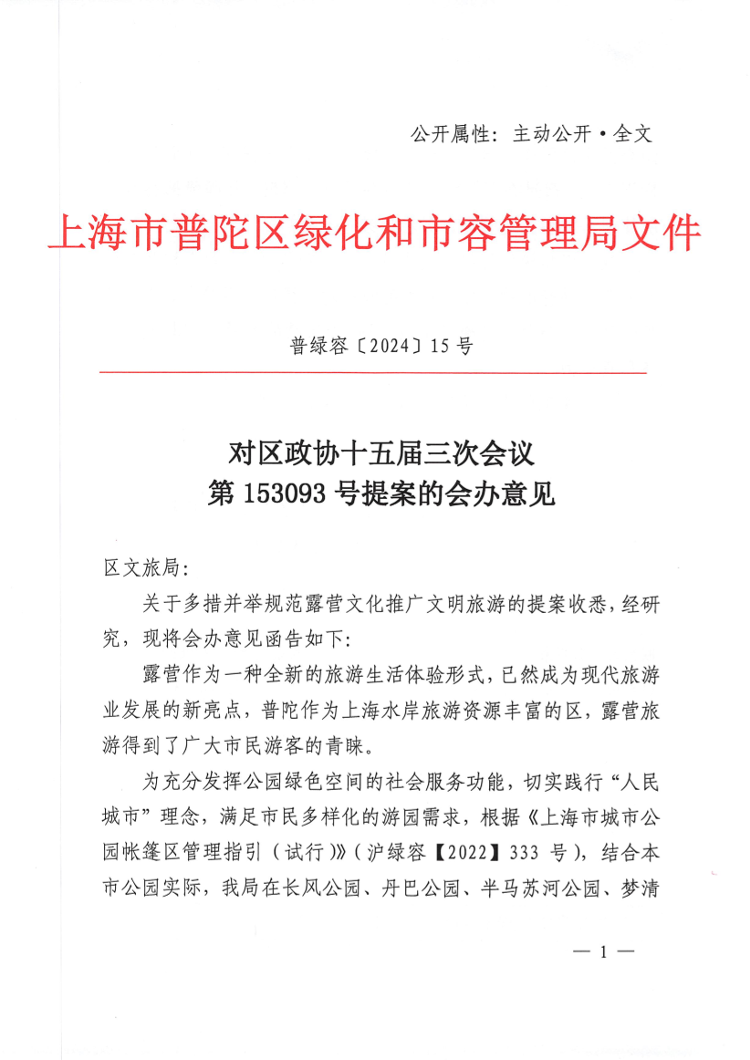关于多措并举规范露营文化推广文明旅游的提案收悉,经研究,现将会办意见函告如下: