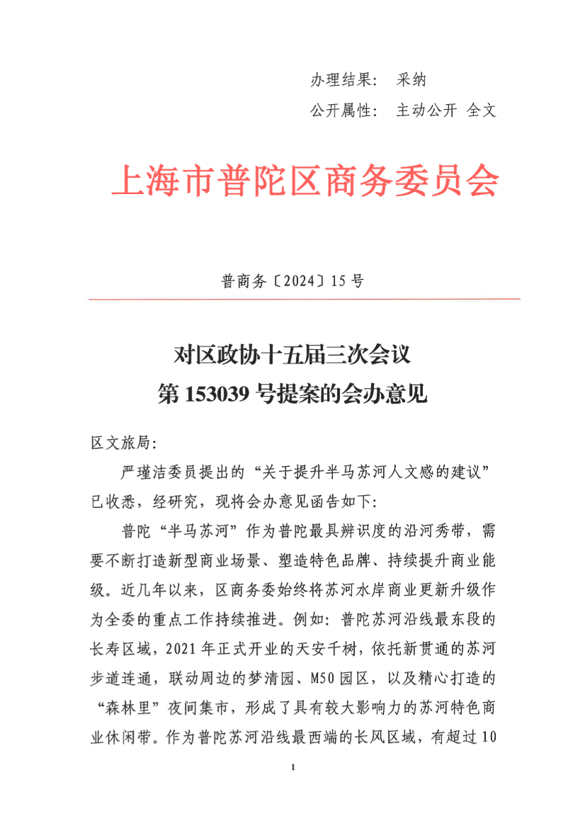 严瑾洁委员提出的“关于提升半马苏河人文感的建议”已收悉,经研究,现将会办意见函告如下:
