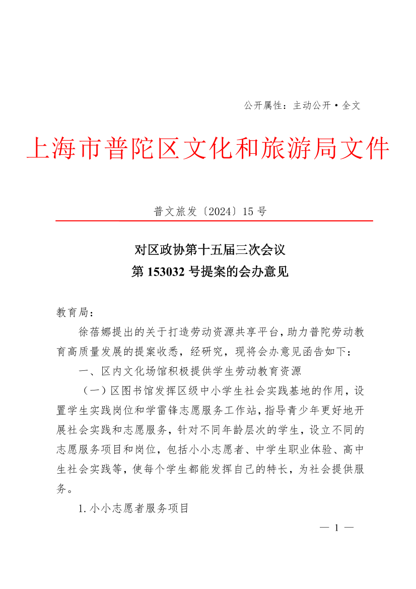 (二)上海纺织博物馆、上海元代水闸遗址博物馆和苏州河工业文明展示馆均为普陀区志愿者服务基地,长期提供学生志愿者服务劳动体验和博物馆志愿讲解服务活动。此外,区内多家博物馆已与学校开展合作,定期举办馆校课程实践研讨活动、巡展进校园活动、沉浸式微党课活动、宣讲员培训活动、志愿服务培训班、暑期研学一日营等,为普陀学生提供形式丰富多样的劳动实践和体验活动。区文旅局对相关工作始终予以鼓励配合。