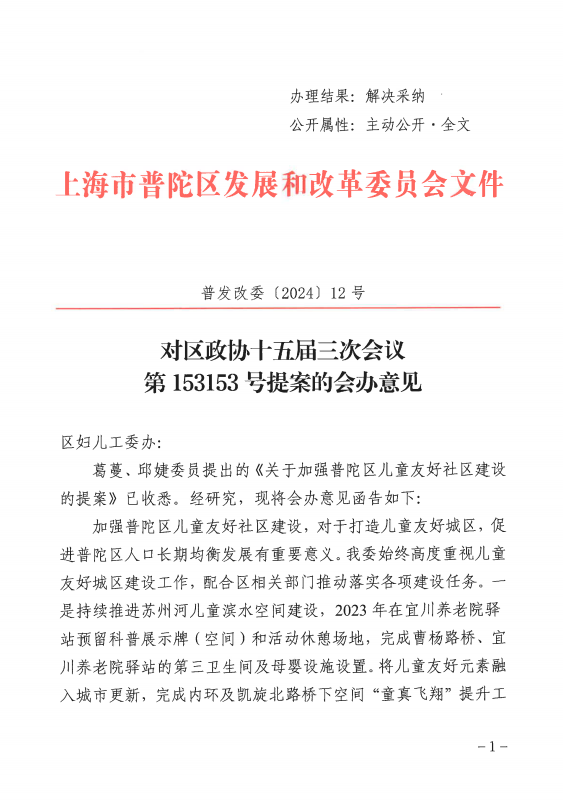 目前,我委正牵头制定《普陀区推进儿童友好城区建设行动方案》,对于葛蔓、邱婕委员的提案内容,我委已结合相关工作进行研究,拟将以下工作作为行动方案重要内容: