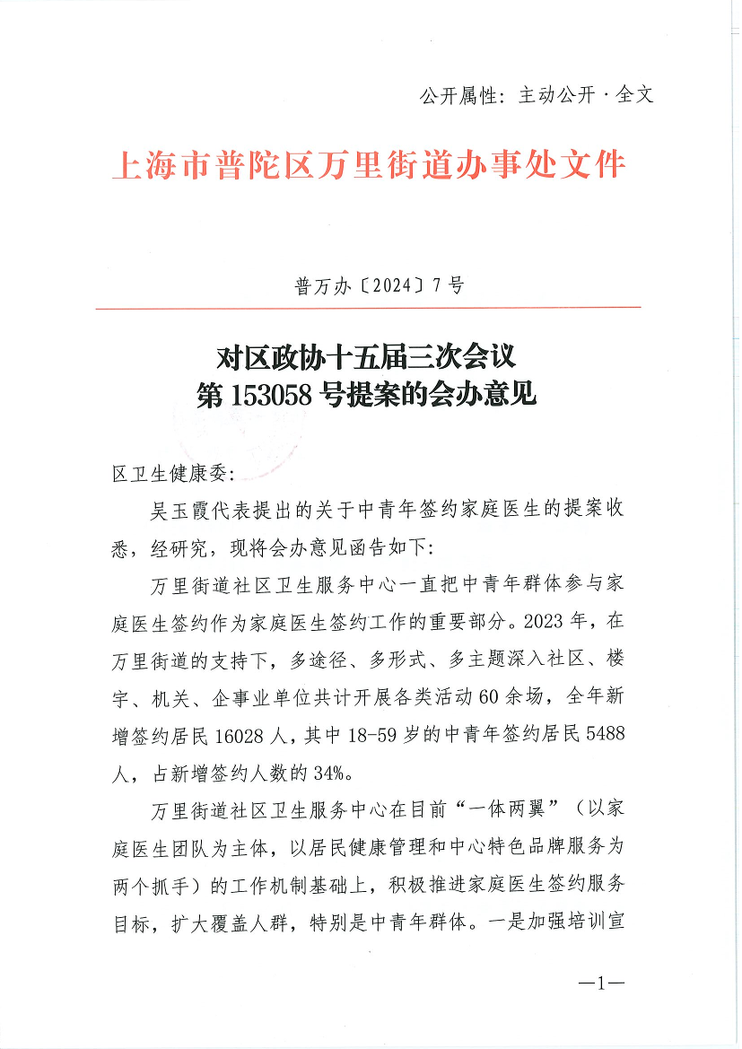 吴玉霞代表提出的关于中青年签约家庭医生的提案收悉,经研究,现将会办意见函告如下: