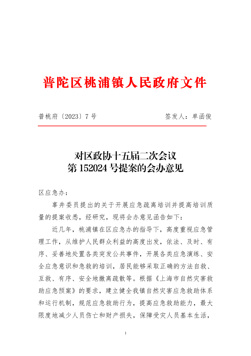 辜井委员提出的关于开展应急疏离培训并提高培训质量的提案收悉,经研究,现将会办意见函告如下: