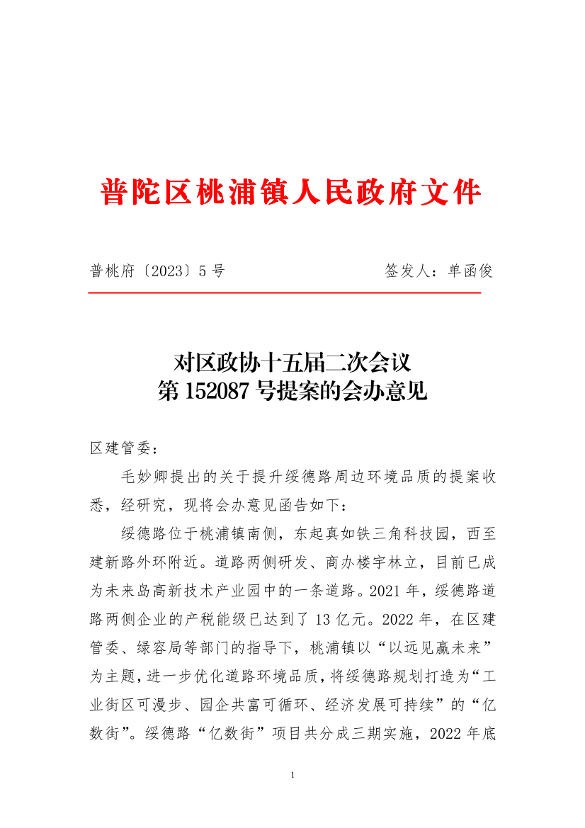 毛妙卿提出的关于提升绥德路周边环境品质的提案收悉,经研究,现将会办意见函告如下: