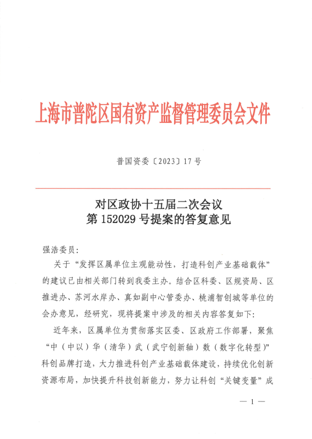 关于“发挥区属单位主观能动性,打造科创产业基础载体”的建议已由相关部门转到我委主办。结合区科委、区规资局、区推进办、苏河水岸办、真如副中心管委办、桃浦智创城等单位的会办意见,经研究,现将提案中涉及的相关内容答复如下: