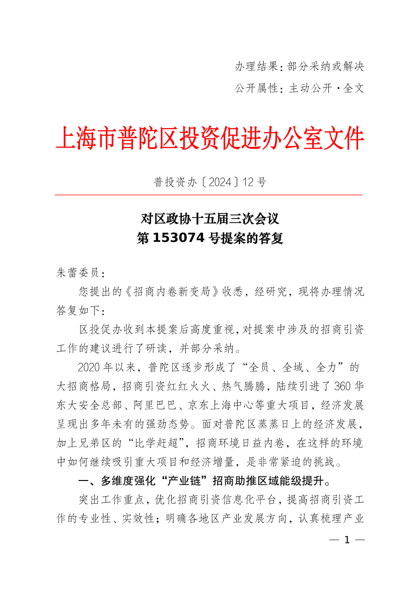 区投促办收到本提案后高度重视,对提案中涉及的招商引资工作的建议进行了研读,并部分采纳。