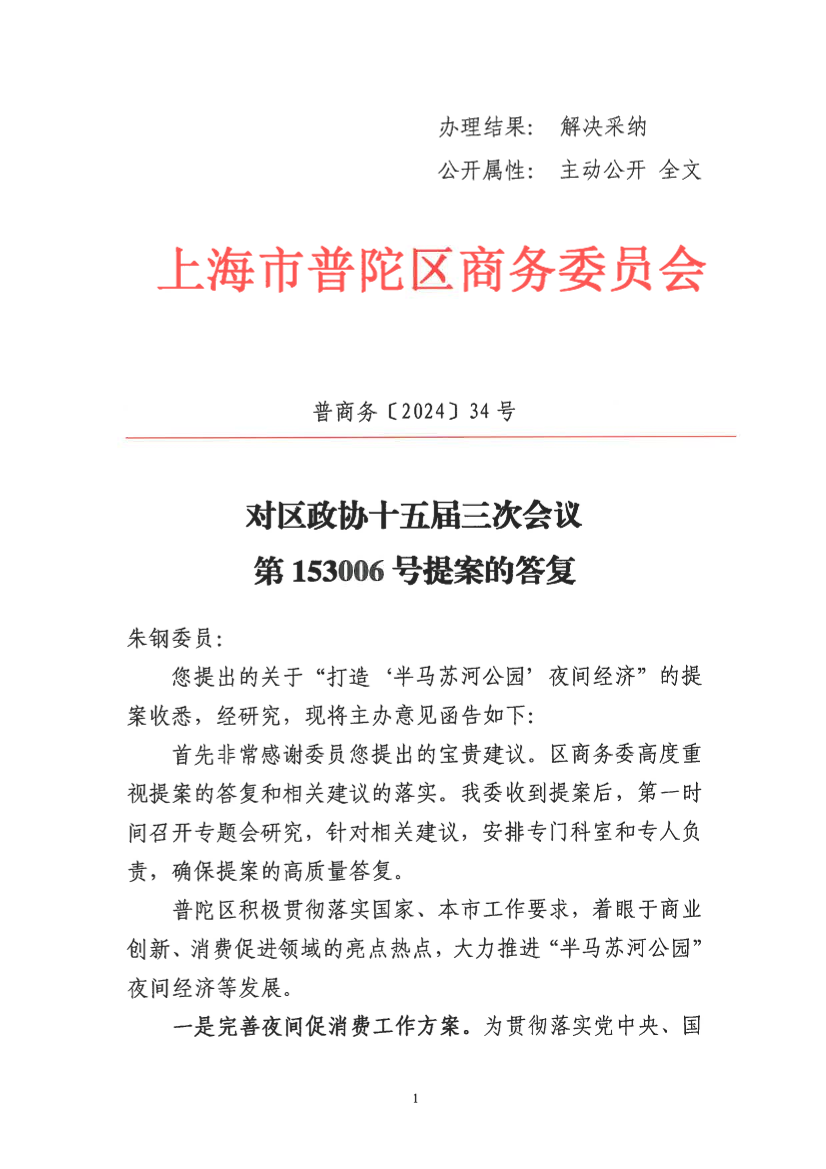 您提出的关于“打造‘半马苏河公园’夜间经济”的提案收悉,经研究,现将主办意见函告如下: