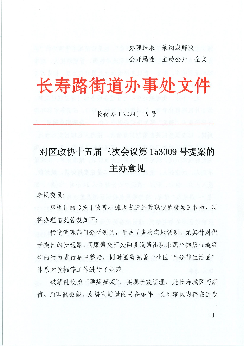 您提出的《关于改善小摊贩占道经营现状的提案》收悉,现将办理情况答复如下: