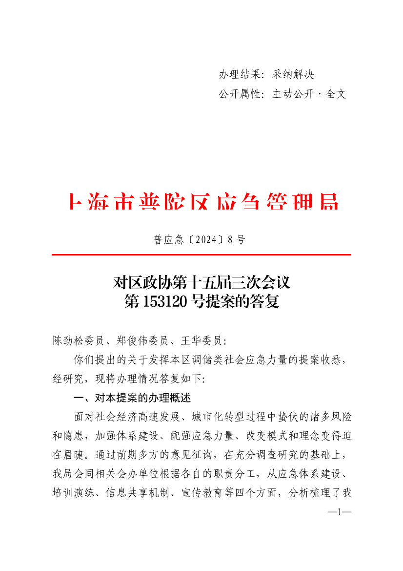 你们提出的关于发挥本区调储类社会应急力量的提案收悉,经研究,现将办理情况答复如下: