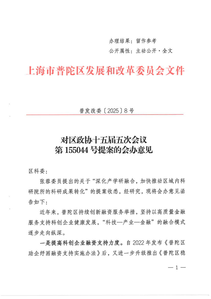 下一步,我委将采取更为精准的举措,持续发挥“银行让利+政府贴息”的融资扶持政策效应,进一步降低科创主体融资成本;推动政府引导基金、社会资本与区内科创企业形成合作闭环,实现科技创新链与金融资本链协同耦合,助力普陀区经济高质量发展。