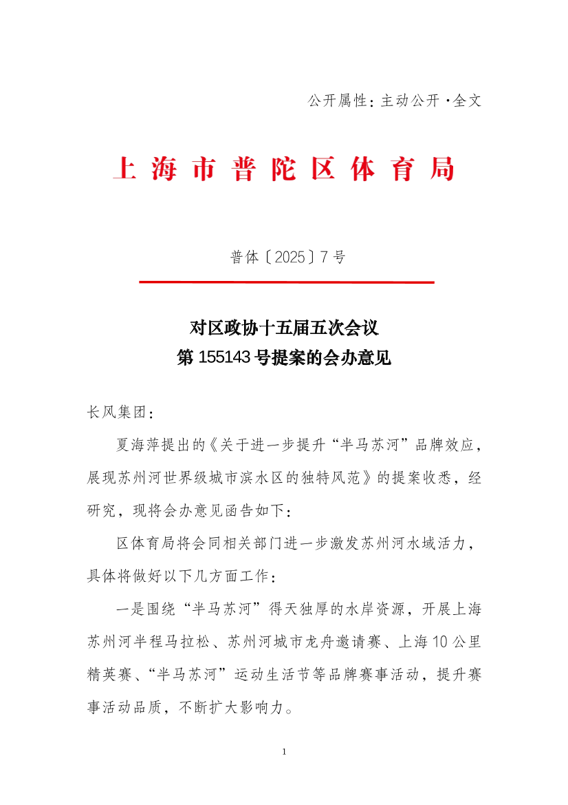 夏海萍提出的《关于进一步提升“半马苏河”品牌效应,展现苏州河世界级城市滨水区的独特风范》的提案收悉,经研究,现将会办意见函告如下