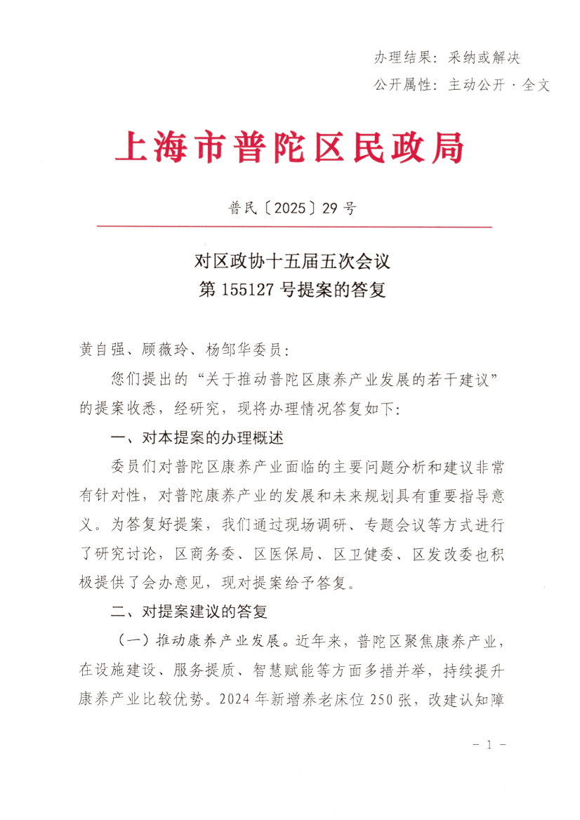 我们非常重视并积极回应您们提出的关于康养产业示范基地建设的建议。通过进一步支持康养产业发展,深化医养结合发展,促进长护险完善发展等举措,普陀区将进一步推动康养产业的发展,并力争建设为全国领先的康养产业示范区域。我们将继续努力,为老年人提供更加高效、便捷、专业的康养服务,并推动社会经济的高质量发展。