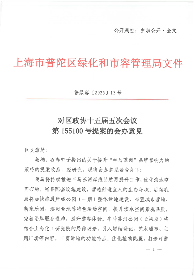 姜楠、石春轩子提出的关于提升“半马苏河”品牌影响力的策略的提案收悉,经研究,现将会办意见函告如下: