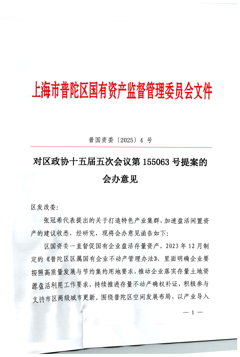 区国资委一直督促国有企业盘活存量资产,2023年12月制定的《普陀区区属国有企业不动产管理办法》,里面明确企业要按照高质量发展与节约集约用地要求,推动企业落实存量土地资源盘活利用工作要求,持续推进存量不动产确权补证,积极参与支持市区两级城市更新。围绕普陀区空间发展布局,以产业导入为重点推动企业存量不动产盘活利用,引导企业空间资源优先承载重点培育产业,推进不动产业态调整和转型升级。加快调整、置换、处置零星物业资产和闲置不动产,及时清盘回笼资金,支撑企业主业发展。推进企业探索创新土地房屋高效利用的机制,探索使用创新金融工具,形成“资金﹣资产﹣资本”造血循环,切实发挥国有企业在建设现代化产业体系、构建新发展格局中的科技创新、产业引领和安全支撑作用。