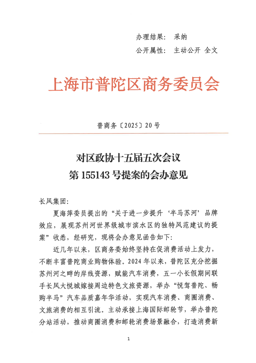 夏海萍委员提出的“关于进一步提升‘半马苏河’品牌效应,展现苏州河世界级城市滨水区的独特风范建议的提案”收悉,经研究,现将会办意见函告如下: