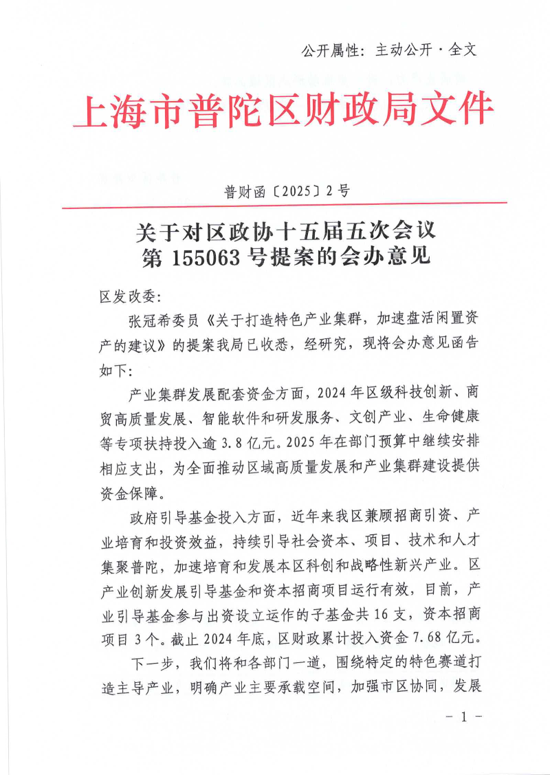 张冠希委员《关于打造特色产业集群,加速盘活闲置资产的建议》的提案我局已收悉,经研究,现将会办意见函告如下: