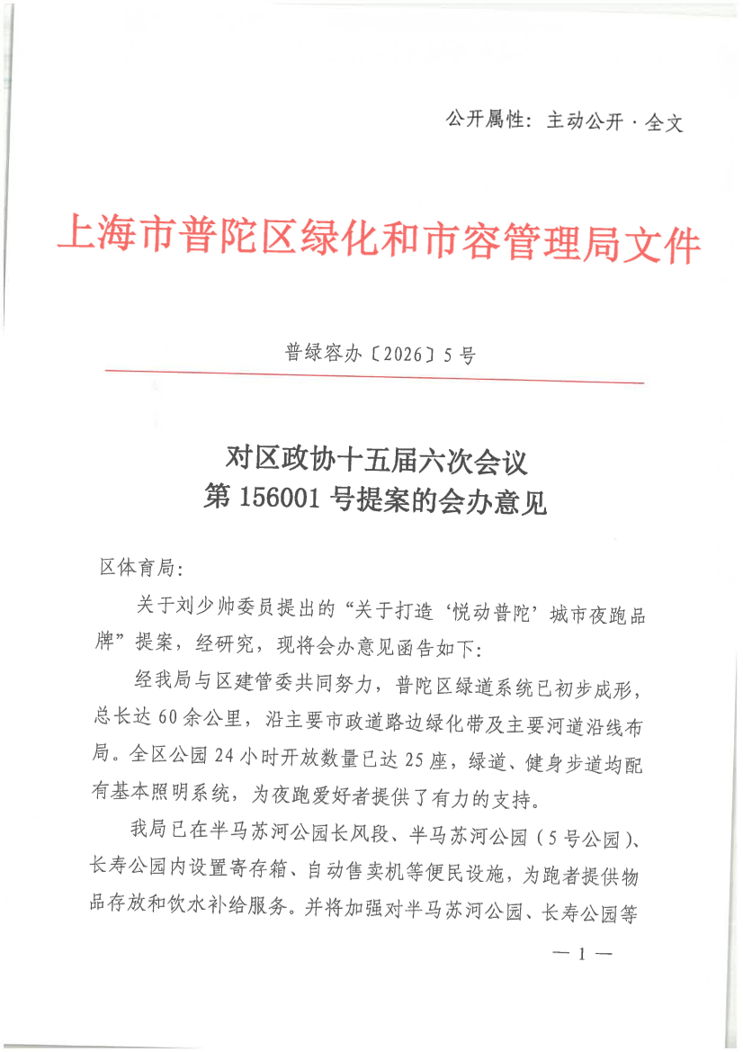 关于刘少帅委员提出的“关于打造‘悦动普陀’城市夜跑品牌”提案,经研究,现将会办意见函告如下: